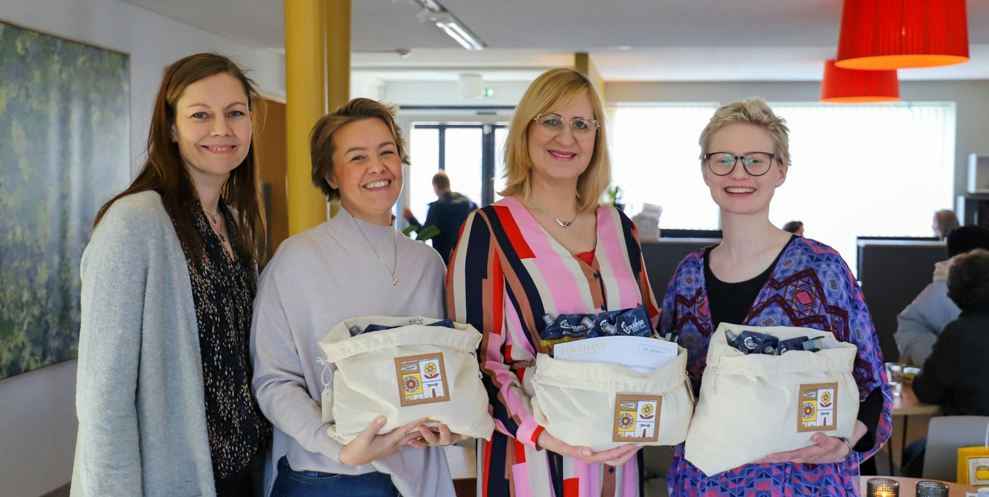 Fulltrúar L'occitane komu færandi hendi með styrkinn fyrir handáburðinn ásamt góðum sápum og kremum.