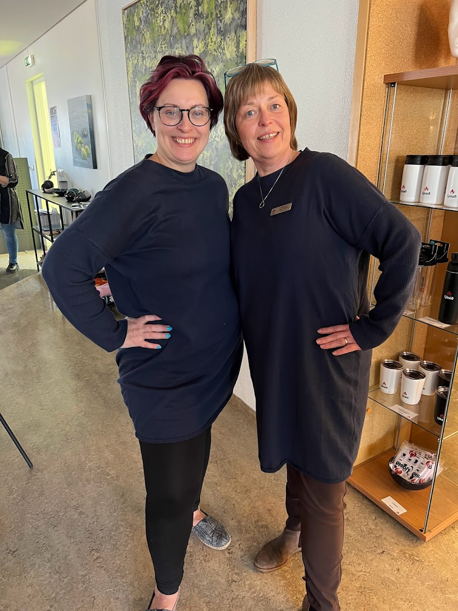 Fulltrúar verslunarinnar Pfaff komu okkur heldur betur á óvart þegar þau mættu færandi hendi með tvær glæsilegar saumavélar. Það var sannarlega kominn tími á endurnýjun og því kærkomið.